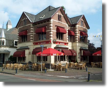 Voorheen een bank, thans cafe/restaurant De Reiziger, het onofficiële kantoor van